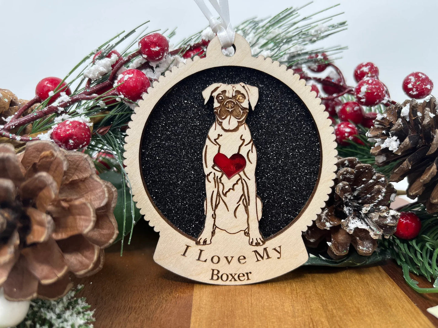 The perfect Christmas ornament for every dog owner! This Beautiful Laser cut Wooden Memento is a great Christmas Tree Ornament, Wall Hanging, Collectible. Our dog silhouette ornaments make great gifts for the dog lover that has everything!