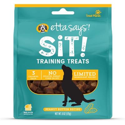 Your pup will be a lifelong learner after he tastes Etta Says! Sit Training Treats Peanut Butter Recipe Dog Treats. These bite-sized, tasty treats are only three calories each—perfect for training sessions with your super-smart pal. They feature high-quality ingredients, including flaxseed and peanut butter flavor—a doggy favorite! And the limited-ingredient recipe doesn’t include any gelatin, corn, wheat or soy. Use them as a training reward or a low-calorie snack!