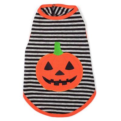 Fabulously stylish for the four-legged fashionista! Let your pup make a statement in this Worthy Dog tank, made from super soft and stretchy cotton/spandex yarn dye stripe knit fabric and featuring a soft knit applique Jack-O-Lantern design on the back.