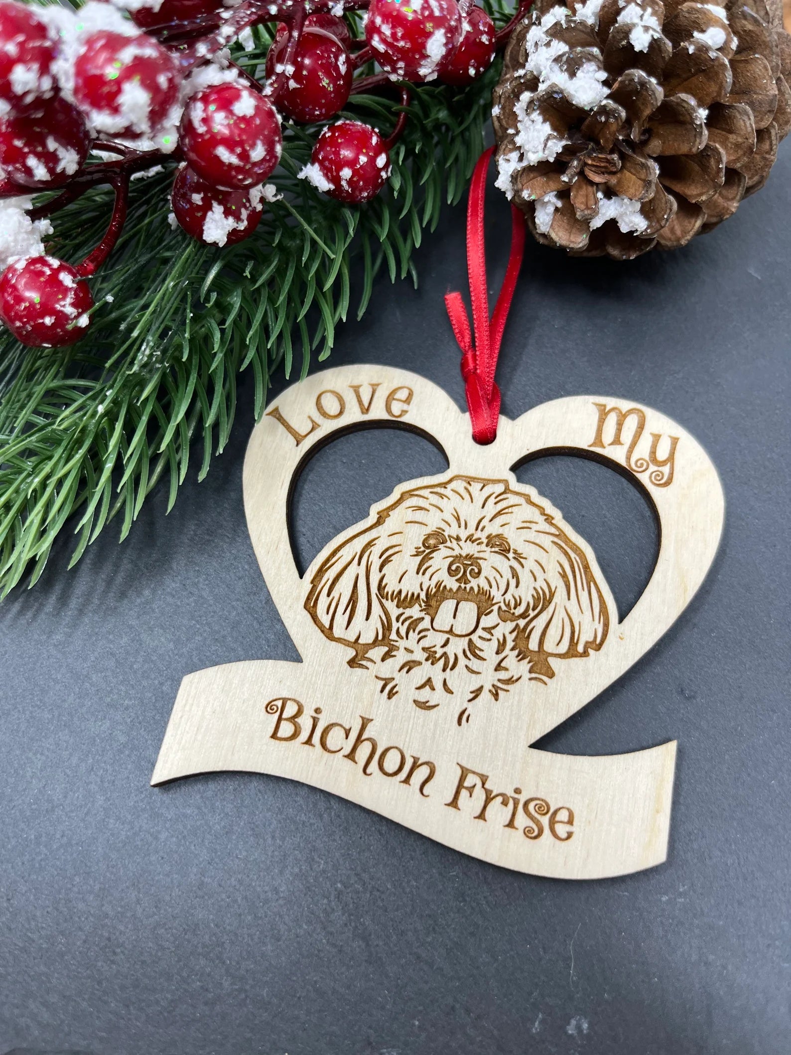 The perfect Christmas ornament for every dog owner! This Beautiful Laser Engraved Wooden Memento is a great Christmas Tree Ornament, Wall Hanging, Collectible. Man's best friend should be celebrated. Our dog ornaments make great gifts for the animal lover that has everything!