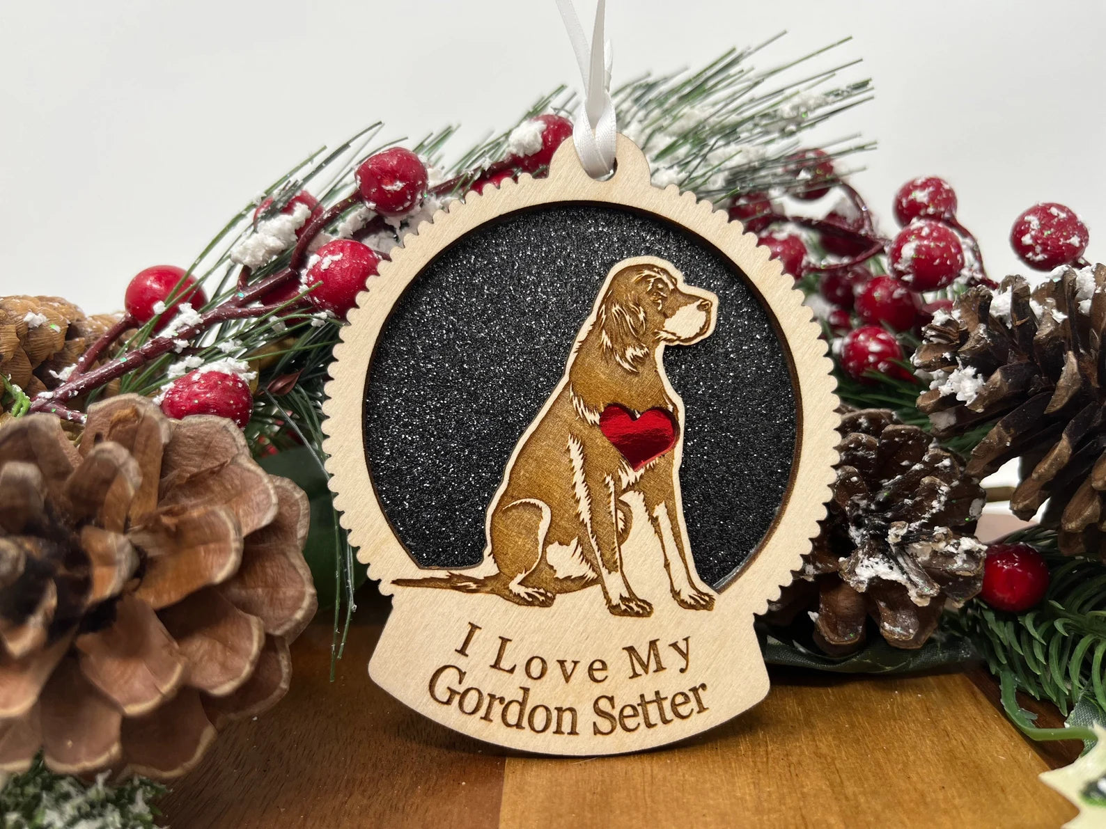 The perfect Christmas ornament for every dog owner! This Beautiful Laser cut Wooden Memento is a great Christmas Tree Ornament, Wall Hanging, Collectible. Our dog silhouette ornaments make great gifts for the dog lover that has everything!