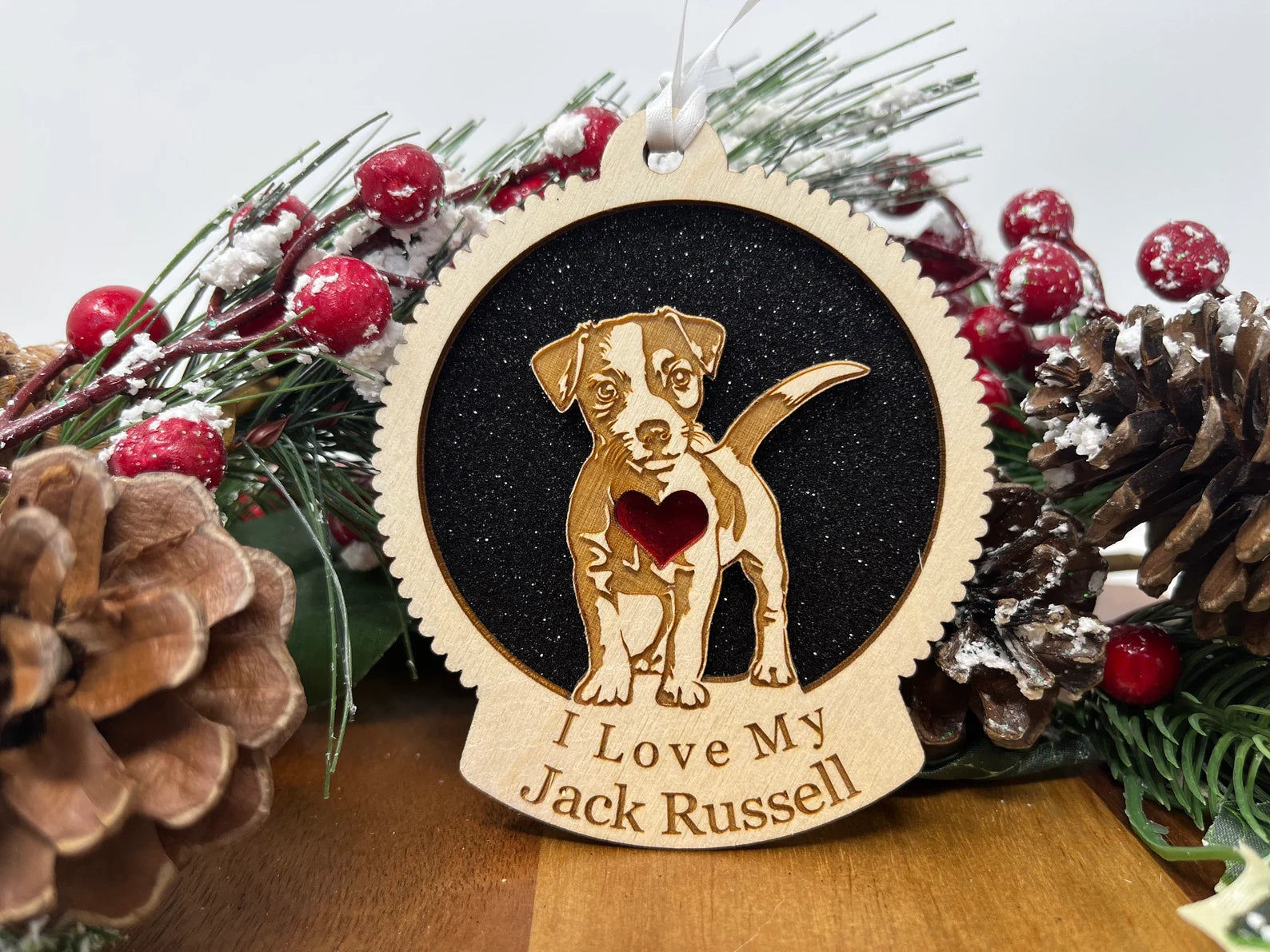 The perfect Christmas ornament for every dog owner! This Beautiful Laser cut Wooden Memento is a great Christmas Tree Ornament, Wall Hanging, Collectible. Our dog silhouette ornaments make great gifts for the dog lover that has everything!