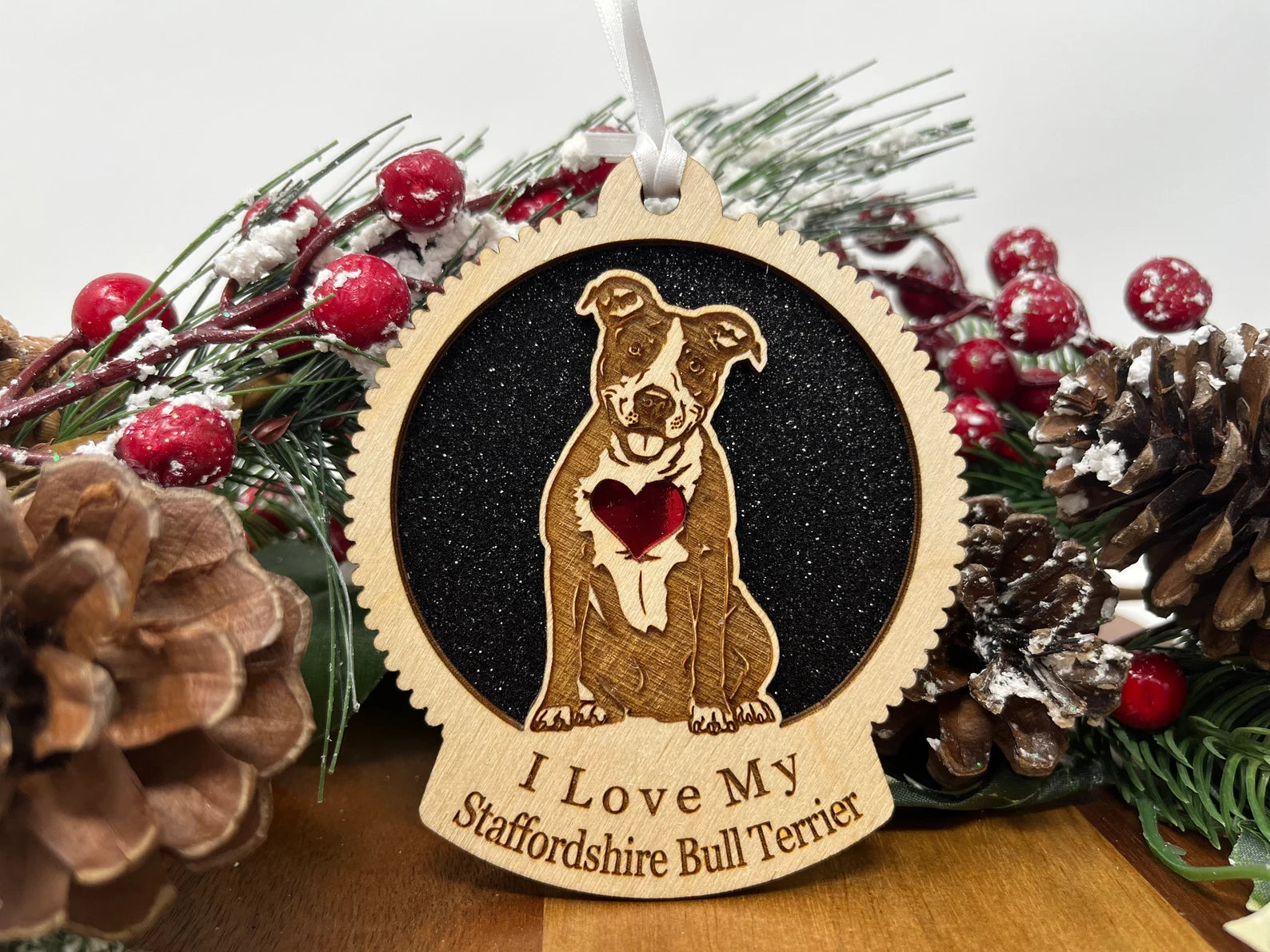 The perfect Christmas ornament for every dog owner! This Beautiful Laser cut Wooden Memento is a great Christmas Tree Ornament, Wall Hanging, Collectible. Our dog silhouette ornaments make great gifts for the dog lover that has everything!