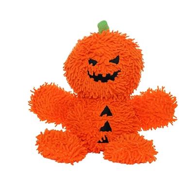Mighty® Microfiber Ball Pumpkin Man Halloween Holiday Dog Toy - Minimal Stuffing! Squeaker balls replace most of the stuffing in the body. Soft edges won't hurt gums.  Machine washable (air dry) and it floats!  These toys may seem plush on the outside, but all the durability features are internal making them soft, yet Mighty® strong.