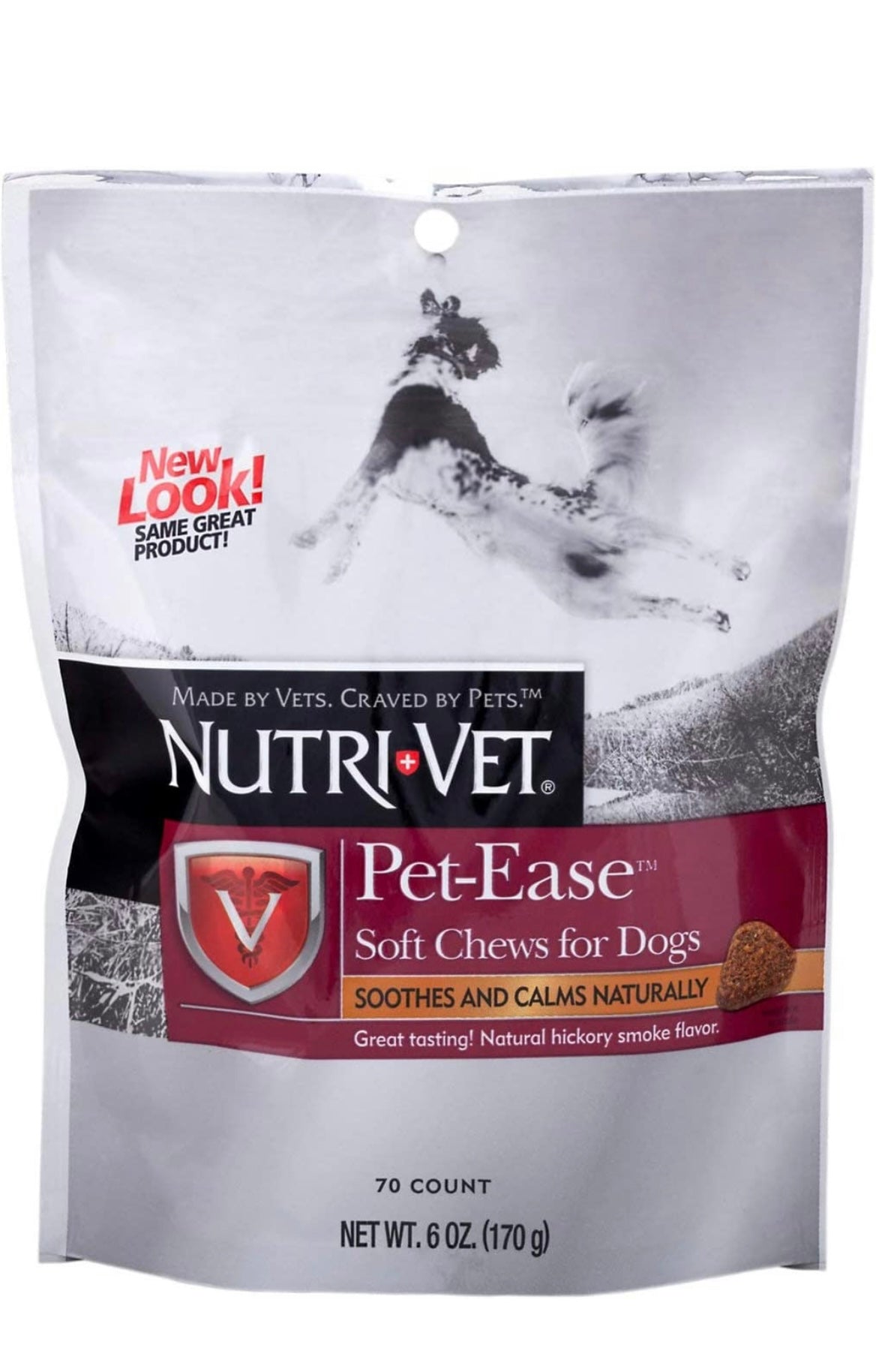 Nutri-Vet Pet-Ease supplements for dogs help calm your pet the natural way. These veterinary formulated soft chews contain a blend of herbs and amino acids that can ease dog and owner separation. They also can relieve stress during thunderstorms, travel, grooming and boarding, and can help alleviate motion sickness.
