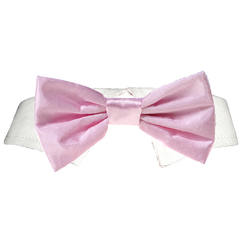Elegant dress-up collar with detachable bow tie. Velcro closure. 50% cotton, 50% satin. Pink. XXL neck size: 18".