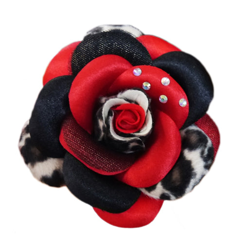 Add fun and glamour instantly to any ordinary collar. Each flower is handcrafted with special fabrics and trims. Flower attaches to existing collar with velcros. Flower measures 3" and 4". Recommended for neck size 12"-18".