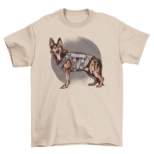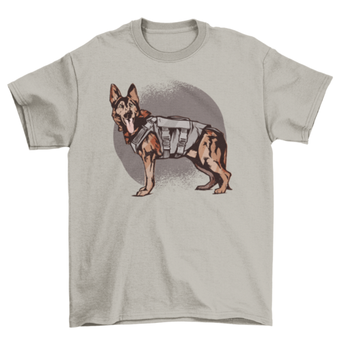 T-shirt design featuring a German Shepherd from a K-9 police unit wearing a vest.