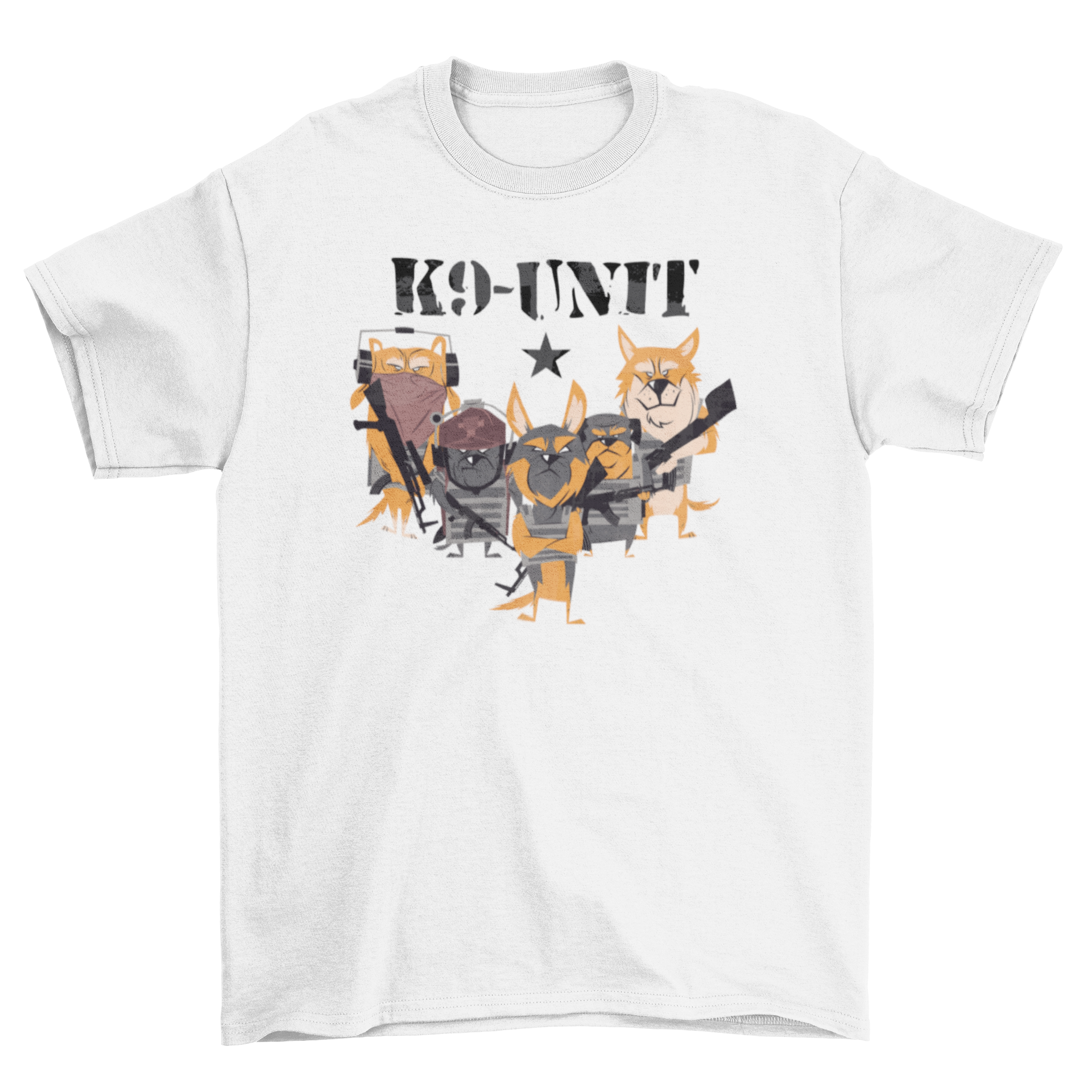 T-shirt design featuring a pack of police dogs and a quote saying K9-UNIT