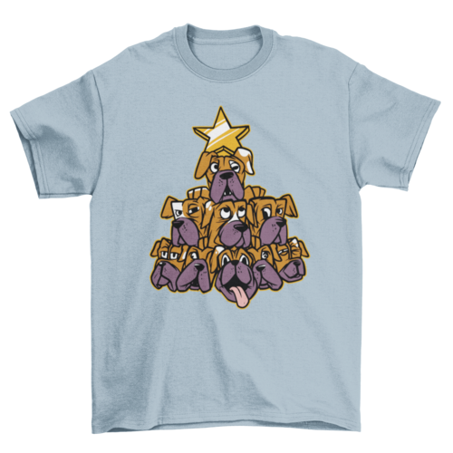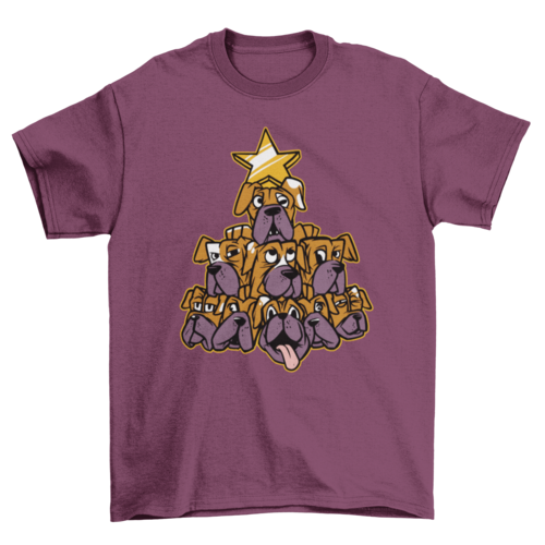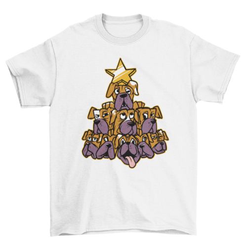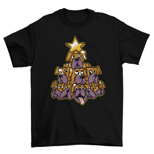 Fun t-shirt design featuring a christmas tree of boxer dogs.