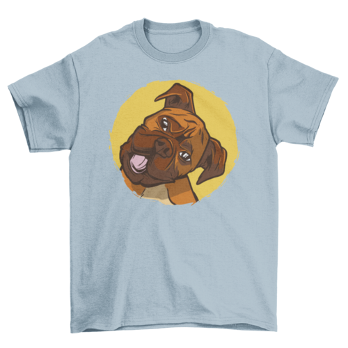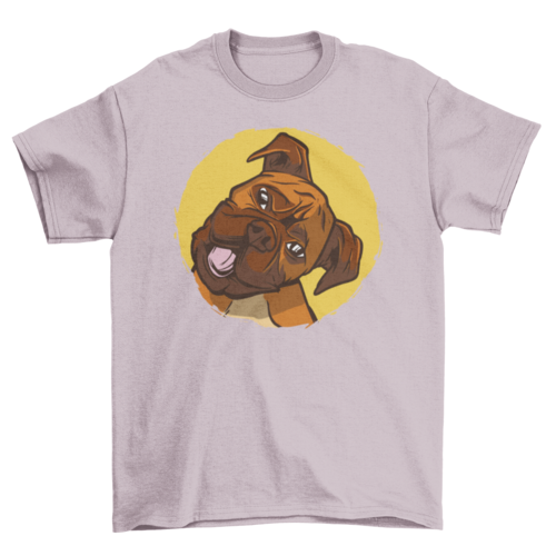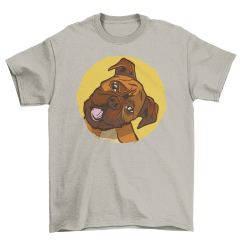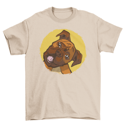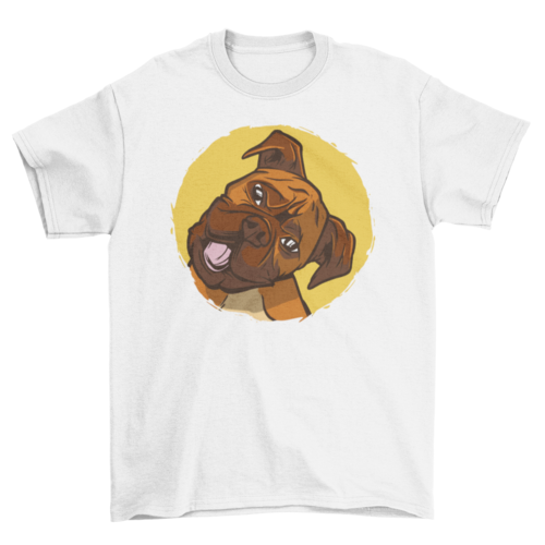 Amazing t-shirt design featuring a boxer dog with his head tilted.