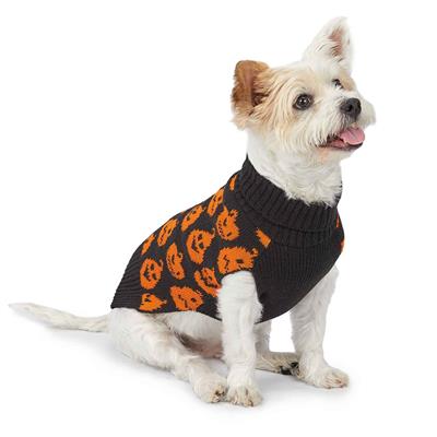 Emblazoned with spooky, orange Jack O' Lanterns, the fun Zack & Zoey Jack O Pumpkin Sweater is ready to trick or treat! Acrylic pullover sweater will keep the chill away on cool days and nights and look great too. Ribbed neck and bottom trim. Pet parents will love the fun, festive pattern. Perfect for Halloween photos and trick or treating. Makes a great addition to your Halloween displays.